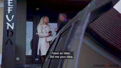 Sexy Blondine Isabelle Deltor, geht mit dem Priester zum Van, wo sie seinen Schwanz tief lutscht und ihn fickt!