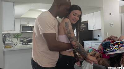 Ein muskulöser schwarzer Kerl mit einem großen Schwanz nimmt Luna Lovely. Die Schlampe saugt gierig an seinem Schwanz und wird von hinten und in Cowgirl gefickt.
