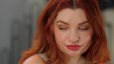 Schöne Lesben, Rotschopf und Brünette Annabel Redd und Rachel Rivers, treffen sich zum Sex. Fußmassage, Fotze lecken und ficken mit einem Strap-on, heiß!