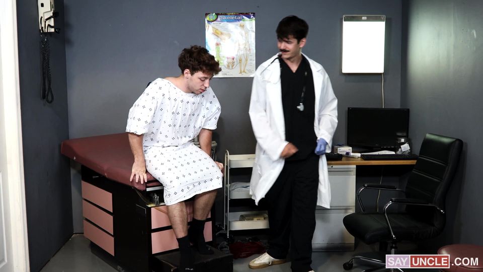 Arzt erregt sich, während er dem Patienten den Arsch fingert