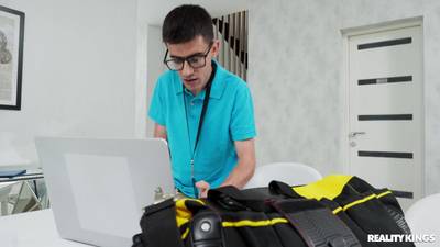 Techniker Jordi kam, um den PC von MILF Zlata Shine zu reparieren, aber er findet einige schmutzige Bilder, die sie hat! Er fängt an, seinen fetten Schwanz zu wichsen, aber die Blondine erwischt ihn in Aktion!