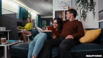 Robby chillt mit seiner Freundin, als sie sieht, wie Angie ihn ansieht. Als seine Freundin geht, geht Angie zu ihm und er kann nicht aufhören, auf ihre fetten Titten zu schauen