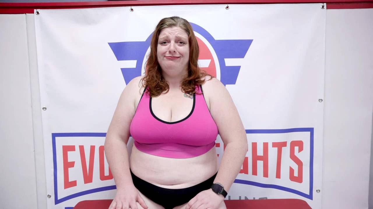 BBW Betty Brickhouse im Ring mit Chad Diamond, den er als einen harten Gegner in dieser visuellen und sportlichen Konfrontation beschreibt.