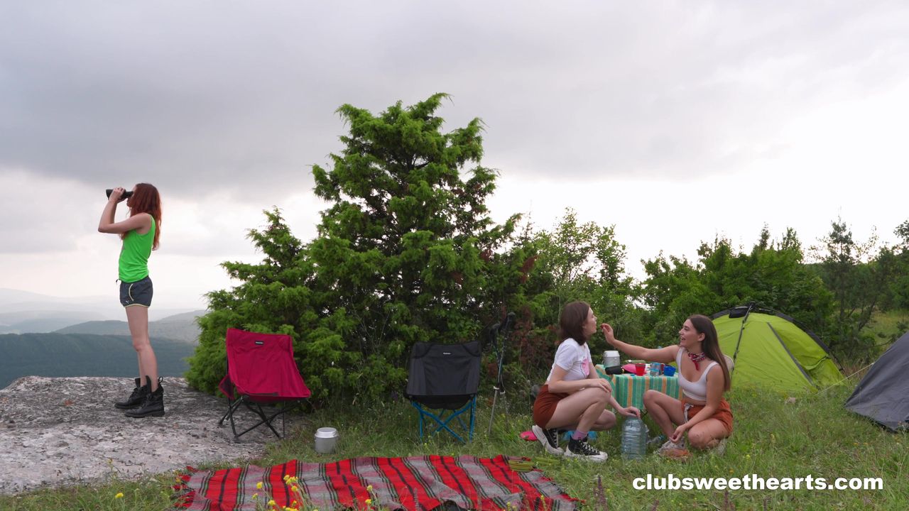 Diese vier Teenie-Freunde haben einen Wanderausflug organisiert! Sie haben einen Platz zum Zelten bekommen und sobald sie sich niedergelassen haben, fangen sie an, Spaß zu haben, saugen und lecken sich gegenseitig die Pussys