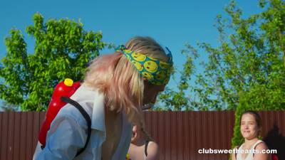 Dieser glückliche Mann spielt Wasserpistole gegen fünf zierliche Babes! Aber es eskaliert schnell, denn jetzt fickt er sie mit seinem Schwanz, jede von ihnen eine nach der anderen