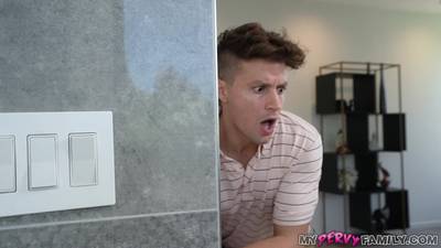 Sofi Adams erwischt ihren Stiefbruder beim Spionieren und er zieht seinen Schwanz heraus