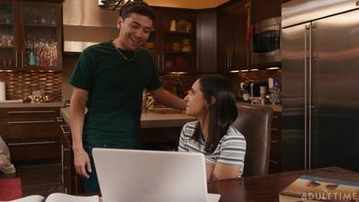 Max hat Hailey Rose beim Masturbieren erwischt, als sie sich einen Porno ansah. Sie ist eine Lesbe, aber sie ist daran interessiert, einen Schwanz zu haben, also stellen sie den Porno nach, den sie gesehen hat