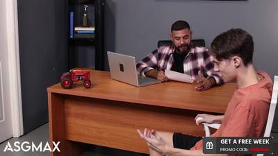 Muskulöser Nico Bär sodomisiert Bareback-Twink Andy Adler im Büro