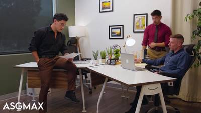 Erstaunlicher schwuler Dreier in diesem Büro zur freien Verwendung