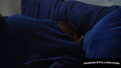 Dieser brünette Mann findet einen muskulösen, tätowierten Mann schlafend auf seinem Bett. Anstatt ihn zum Gehen zu bewegen, dreht er ihn um und beginnt an seinem Schwanz zu saugen