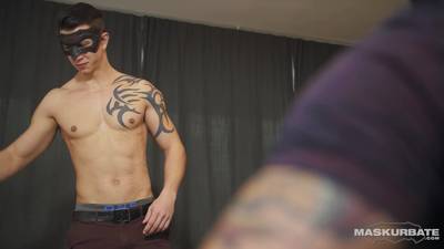 Mohawk-Mann saugt den Schwanz des maskierten Teenagers, bis er steinhart ist