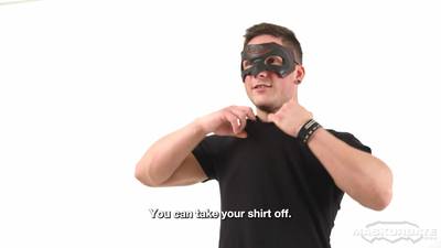 Dieser maskierte, brünette, muskulöse Mann kam zu einem Casting, um seine großen Muskeln zu zeigen und der Kamera zu zeigen, wie er seinen Schwanz wichst