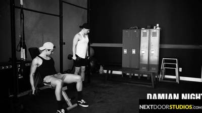 Flotter Dreier mit Fitnessstudio-Bros, die Schwanz lutschen und roh ficken