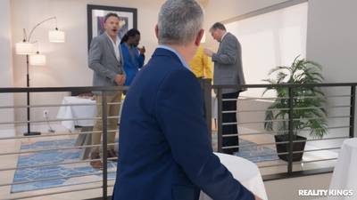 Die neue Mitarbeiterin Ryan Reid zeigt Mick Blue und Scott Nails auf einer Arbeitsparty ihre Titten und ihre feuchte Muschi. Daraufhin wird sie von Mick und Scott Nails bespuckt.