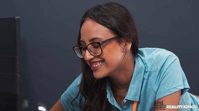 Die vollbusige MILF Abi James erwischt die neue IT Lola Aiko dabei, wie sie den Schwanz von Mike Ox lutscht. Sie schleppt sie ins Büro, versohlt ihr den Hintern und lässt sie zur Strafe ihre Muschi essen.