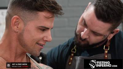 Nach einem Tattoo will dieser Mann nur den Schwanz seines Tätowierers deepthroaten, seinen Arsch lecken und fressen, dann ihn hardcore fisten!