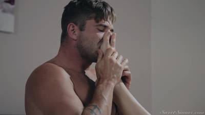 Nach einigen süßen und leidenschaftlichen Liebkosungen und Küssen auf ihrem Körper, saugt dieser freaky Mann an ihren Zehen und fingert dann ihre Muschi, während sie seinen Schwanz lutscht