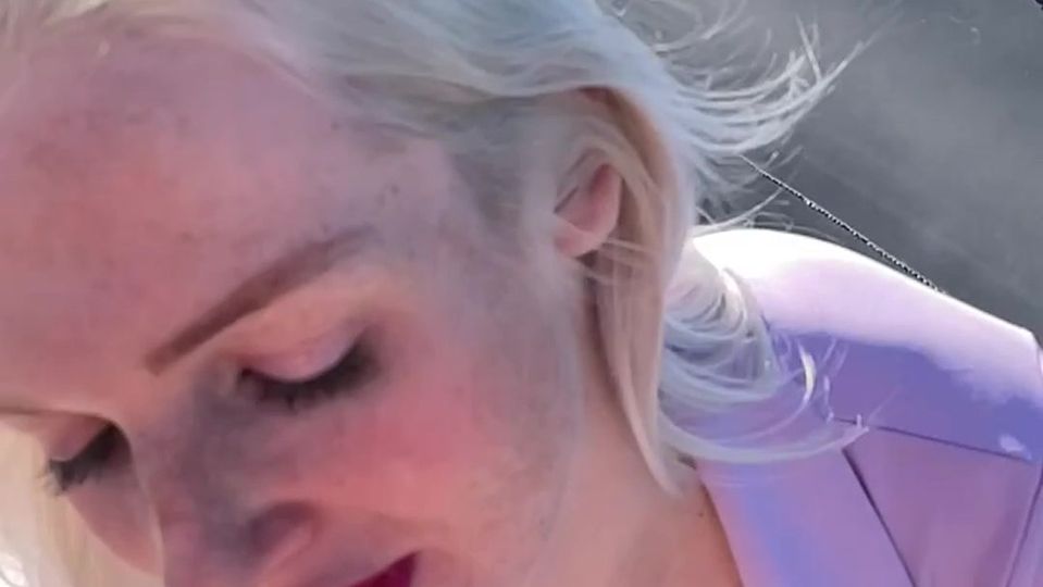 Französische Blondine Jade Latour liebt es, im Freien Schwänze zu saugen