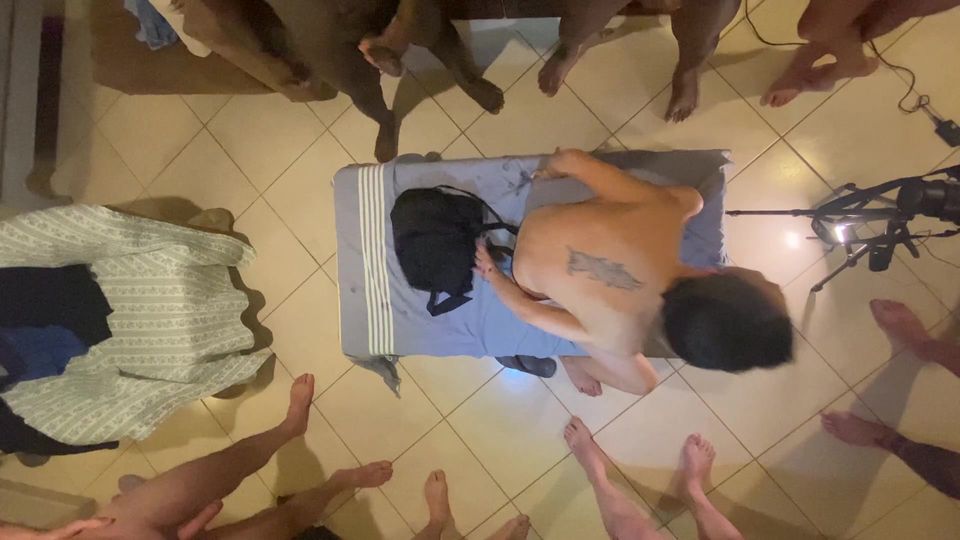 Diese geile Brünette lutscht Schwänze in einem Gangbang. Wir sehen sie von oben ficken, schreien vor Vergnügen und bekommen einen brutalen Gesichts-Cumshot