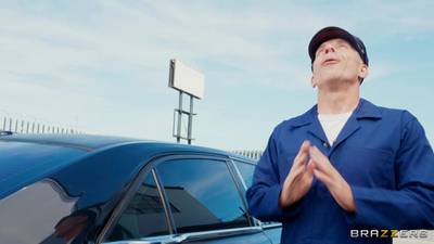 Mick Blue, der sich als Limousinenfahrer ausgibt, holt die geilen Blake Blossom und Hailey Rose, deren große Titten und Muschis blitzen, für einen Dreierfick in der Limousine ab