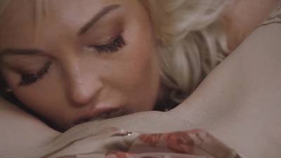 Charlie Red und Lovita Fate, blonde Lesben, geben sich einem heißen Cunnilingus hin. Sie lecken sich gegenseitig leidenschaftlich und stöhnen vor Vergnügen