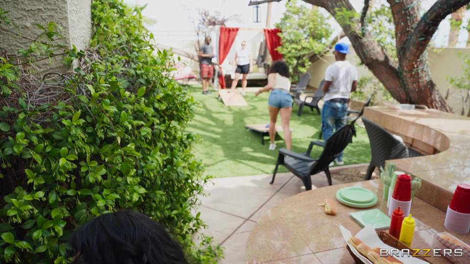 Nika Venom entdeckt Van Wyldes Schwanz auf einer Grillparty und stiehlt ihn seiner Freundin für einen heimlichen Fick am Grill, während die Gäste Cornhole spielen.