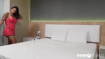 Busty trans Rosy Pinheiro, heiße Brünette, saugt Schwanz und wird hart in den Arsch gefickt. Anal und tiefe Blowjobs in einem heftigen Fick.