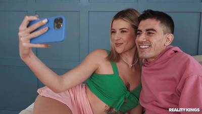 Angelique Rose saugt Jordi's dicken Schwanz, während er Fotos macht