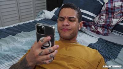 Skylar Vox wird von Mike Ox verarscht und erwischt ihn mit Schwanzbildern und Pornos. Beeindruckt, saugt sie seinen großen Schwanz und reitet ihn nach