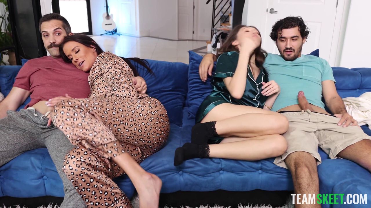 MILF Sofie Marie und Maya Woulfe stehen mit ihren Freunden nebeneinander. Die Dinge beginnen heiß zu werden und plötzlich werden sie Seite an Seite gefickt