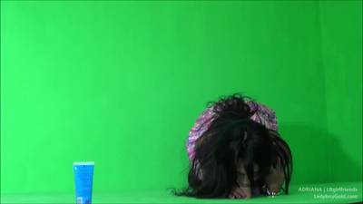 Adriana hat die Gelegenheit, einen Schwanz an einem grünen Gloryhole zu lutschen