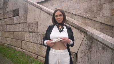 Sie ist zu nett, diese schöne jüngere Brünette, die heute ihre Titten im Freien zeigen will, um uns mit ihrem schönen Körper zu unterhalten. Sie weiß, wie man uns anmacht!