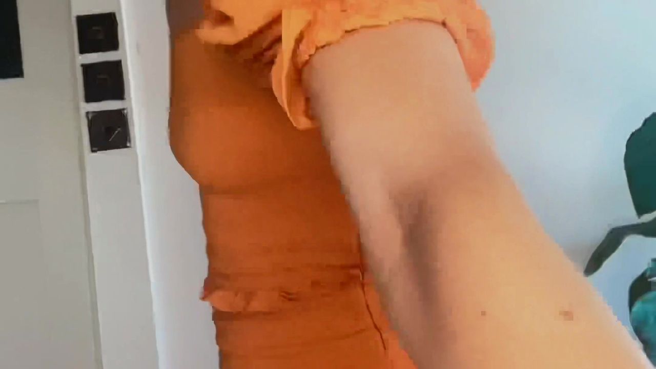 Um uns ihre Muschi zu zeigen und vor allen auf der Webcam zu pissen, zieht dieses schöne Mädchen ihr oranges Kleid aus und erregt uns, indem sie allein ist.