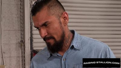 Diese beiden Männer geraten in einen Streit über das Fleisch in der Pizza, so dass der muskulöse Mann ihn überwältigt und ihn dazu bringt, seinen großen Latino-Schwanz zu lutschen!