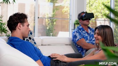 Dieser Cuckold-Ehemann spielt VR-Spiele, also macht sich seine Frau nackt und fängt an, den Teen-Nachbarn zu saugen, bevor er sich bückt und von hinten gefickt wird