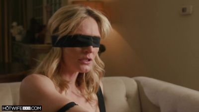 Blonde MILF Mona Wales hat eine Augenbinde auf und ihre Höschen aus, bereit, eine unterwürfige gutes Mädchen für diese beiden Männer, die gehen, um sie hart ficken zu sein