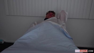 Dieser Patient versucht zu wichsen, aber der schwule Krankenpfleger kommt herein, um seinen Körper zu waschen. Er liebt die Idee, also streichelt der Pfleger seinen Schwanz, während der Patient den Schwanz lutscht!
