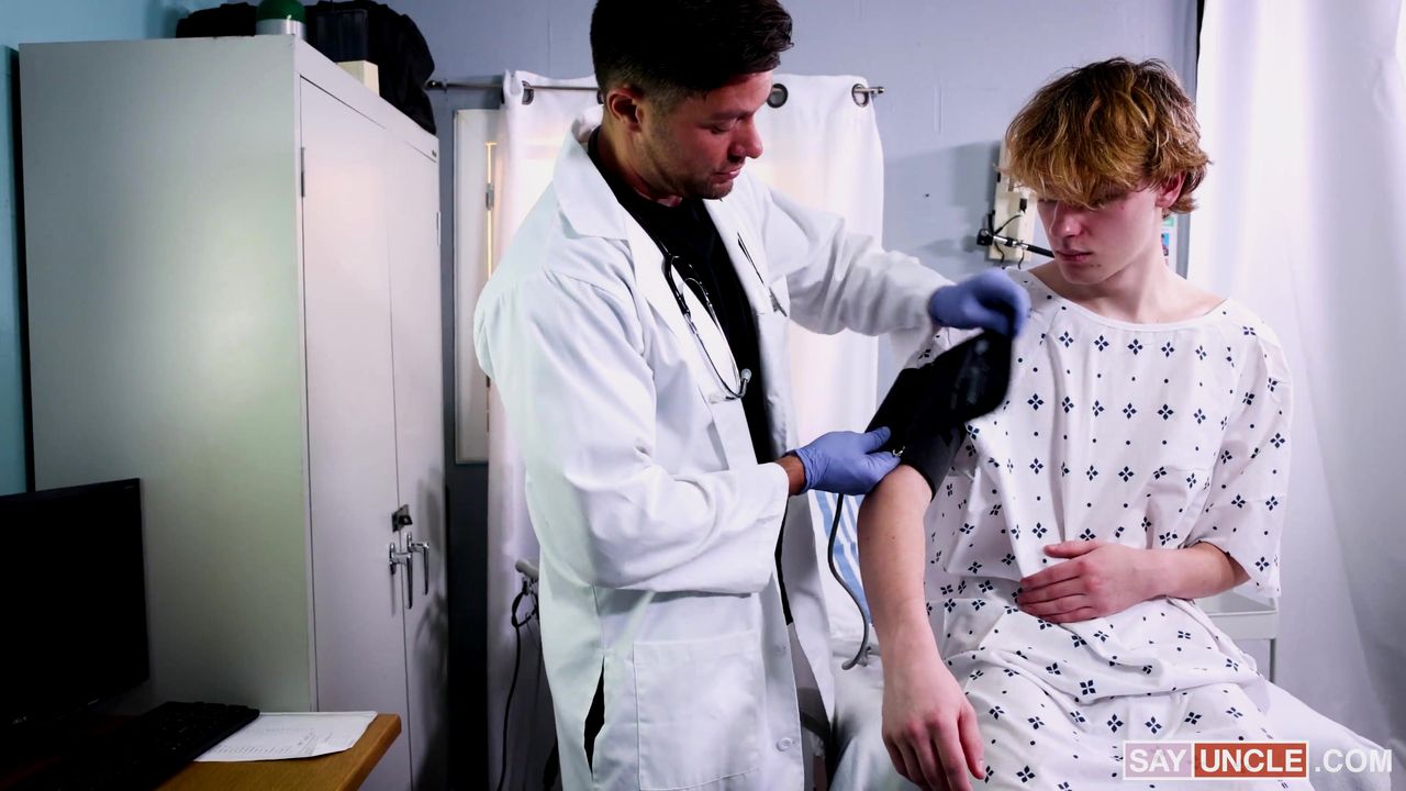 Doktor steckt seine Zunge und Finger in das enge Arschloch dieses Teen