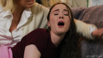Das Kindermädchen Ryan Keely muss diesen frechen Teen Hazel Moore für sein schlechtes Benehmen bestrafen. Sie ohrfeigt ihren Arsch und fickt sie mit einem Strapon!