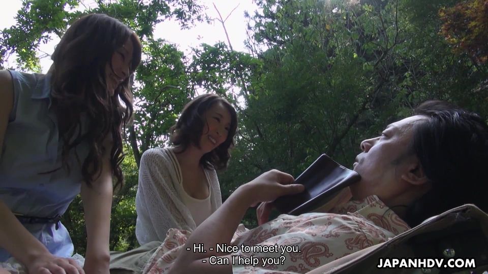 Sakura Aoi und Aya Kisaki in einer Orgie, die im Garten beginnt