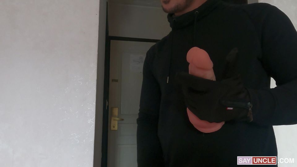 Dieser Einbrecher wurde erwischt, wie er wichsend diesen Mann im Bett anstarrte. Er fragt ihn nach dem Dildo, mit dem er ihn ficken wird!