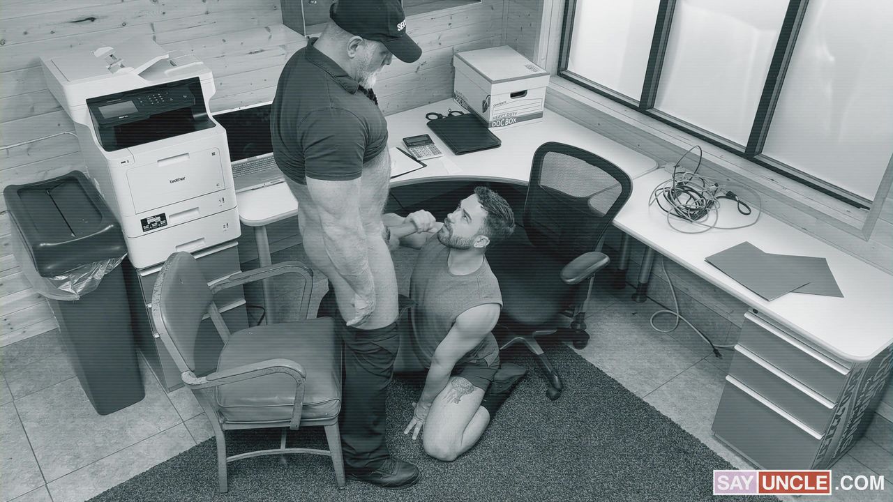 Dieser DILF-Wächter hat diesen Mann beim Stehlen erwischt! Der Mann fleht ihn an, nicht die Polizei zu rufen, und um seine Freiheit zu bekommen, geht er auf die Knie, um den Schwanz des DILF zu lutschen.