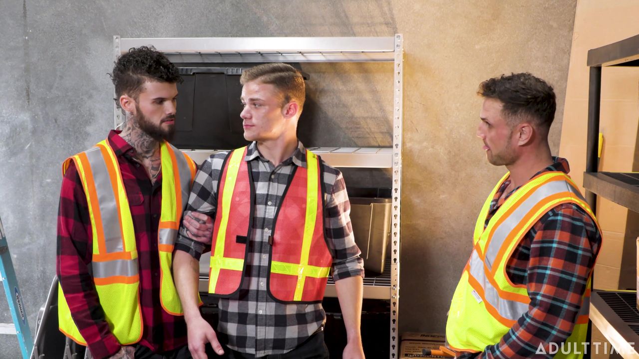 Arbeitende Männer reden darüber, wer den Neuen ausbilden wird. Aber was sie wirklich wollen, ist, einen Zug mit diesem Kerl zu machen, ihn ihre Schwänze lutschen zu lassen und anal zu nehmen.