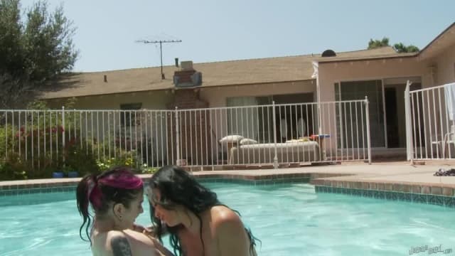 Joanna Angel und Brittany Lynn verbringen den Tag zusammen in der Sonne. Sie erhitzen die Szene mit Küssen, Lecken und Fignern.