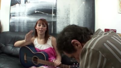 Eine schöne Hure, die gerade Gitarre spielen lernt. Sie hat sehr schöne Lippen und genießt es, eine dreckige junge Schlampe zu sein.