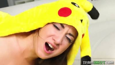 Sie ist eine hübsche Pornostar-Schlampe, die sich gerne verkleidet, wenn sie fickt. Heute ist sie ein kleiner Pikachu, der sehr geil ist!