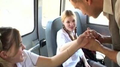 Diese beiden Freunde freuen sich darauf, etwas Erfahrung zu sammeln, da sie sich auf dem Rücksitz eines Lieferwagens befinden und einen Mann vögeln.