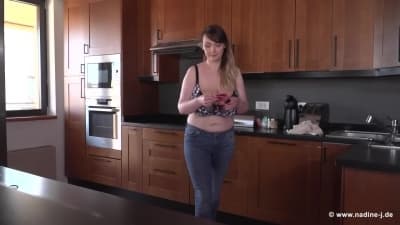 Nadine spielt gerne mit ihren großen Titten. Sie wackelt mit ihnen, massiert sie und leckt an ihnen. Sie milkt auch ihre Titten.