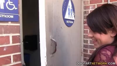Sie geht zu einer Toilette und sieht ein Loch in der Wand, aus dem ein schwarzer Schwanz herauskommt