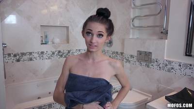 Eine junge Teenager, die ihre Pussy zerstört bekommt. Sie hat ein riesigen, großen, weißen, grober Stock in der Pussy, aber sie mag es trotzdem!